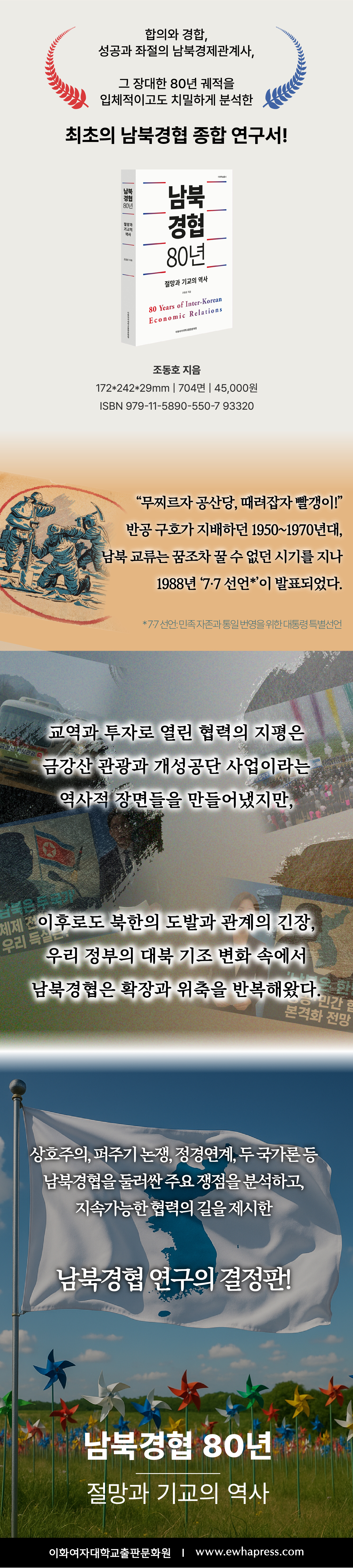 이 책은 적대의 시대를 지나 협력의 물꼬가 트인 이후 정권마다 각기 다른 전략과 대안을 펼쳐온 남북 간 경제관계 80년사를 입체적이고도 치밀하게 탐구한 최초의 종합 연구서이자 남북경협 연구의 결정판이다. 남북경협이라는 개념이 등장한 배경부터 경협 논의의 흐름, 각종 제도와 사업들의 전개 과정, 오늘날의 정체 국면까지 남북 간 경제관계 전반을 방대하게 조망한다. 특히 최초의 남북 경제회담부터 일반교역과 위탁가공교역, 금강산 관광과 개성공단 사업에 이르기까지 구체적인 사례들을 바탕으로 경협의 전개 과정을 살펴보고, 각각의 성과와 한계, 논쟁점을 균형 있게 분석한다. 아울러 상호주의 논쟁, ‘퍼주기’ 비판, 교역통계의 신뢰성, 북한 근로자의 임금 문제, 두 국가론 등 경협을 둘러싼 복합적인 쟁점들에 대해서도 깊이 있는 해설을 제시한다.